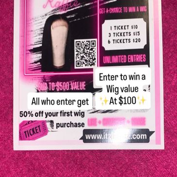 WIG VALUE AT $100. REAL RAW HAIR. ONE TICKET IS $10, 3 TICKETS IS $15 AND 6 TICKETS IS $20.